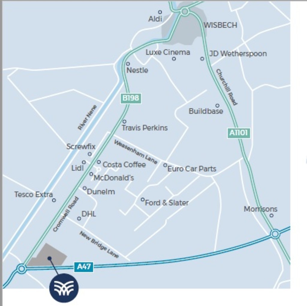 Wisbech Gateway is located directly fronting the busy A47, just 1.5 miles from Wisbech Town Centre, offering exceptional exposure and connectivity.