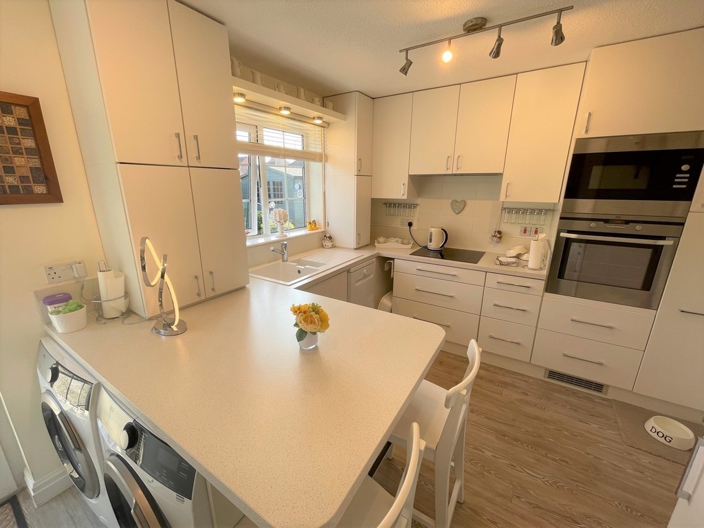 KITCHEN/BREAKFAST ROOM 12' 9" x 9' 10" (3.89m x 3.00m) UPVC double glazed, fully glazed door to rear. UPVC double glazed window to rear. Range of wall and base units with worktops over. Breakfast bar. One and a half sink with mixer taps. Tiled splash backs. AEG Electric hob with extractor fan over and built-in AEG oven and microwave. Integrated fridge and two freezers. Plumbing for washing machine, tumble dryer and dishwasher. Cupboard housing wall mounted 'Worcester' boiler. Radiator.