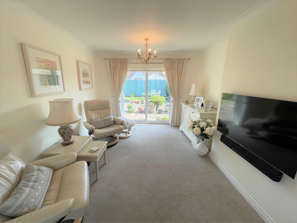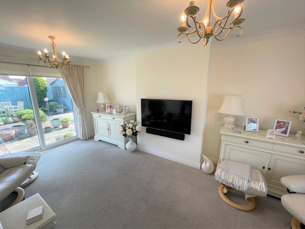 LOUNGE 18' 8" x 10' 4" (5.69m into bay x 3.15m) UPVC double glazed window to front and UPVC double glazed patio doors to rear - double aspect. Two radiators.