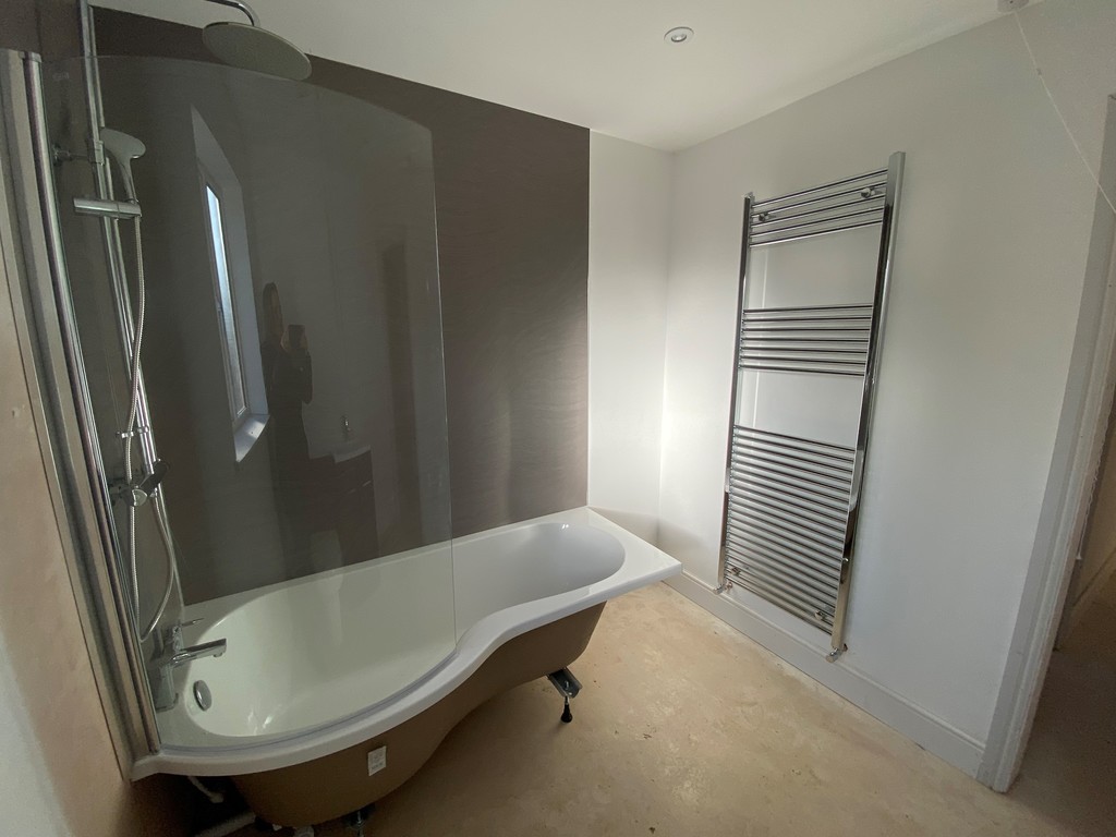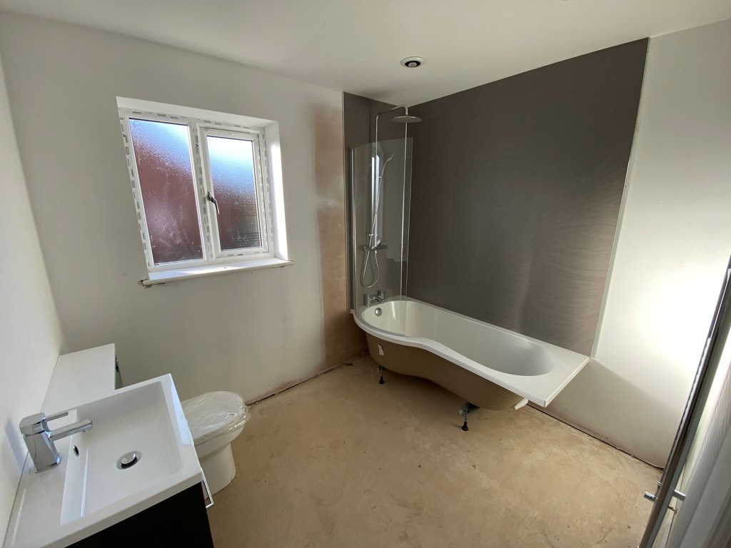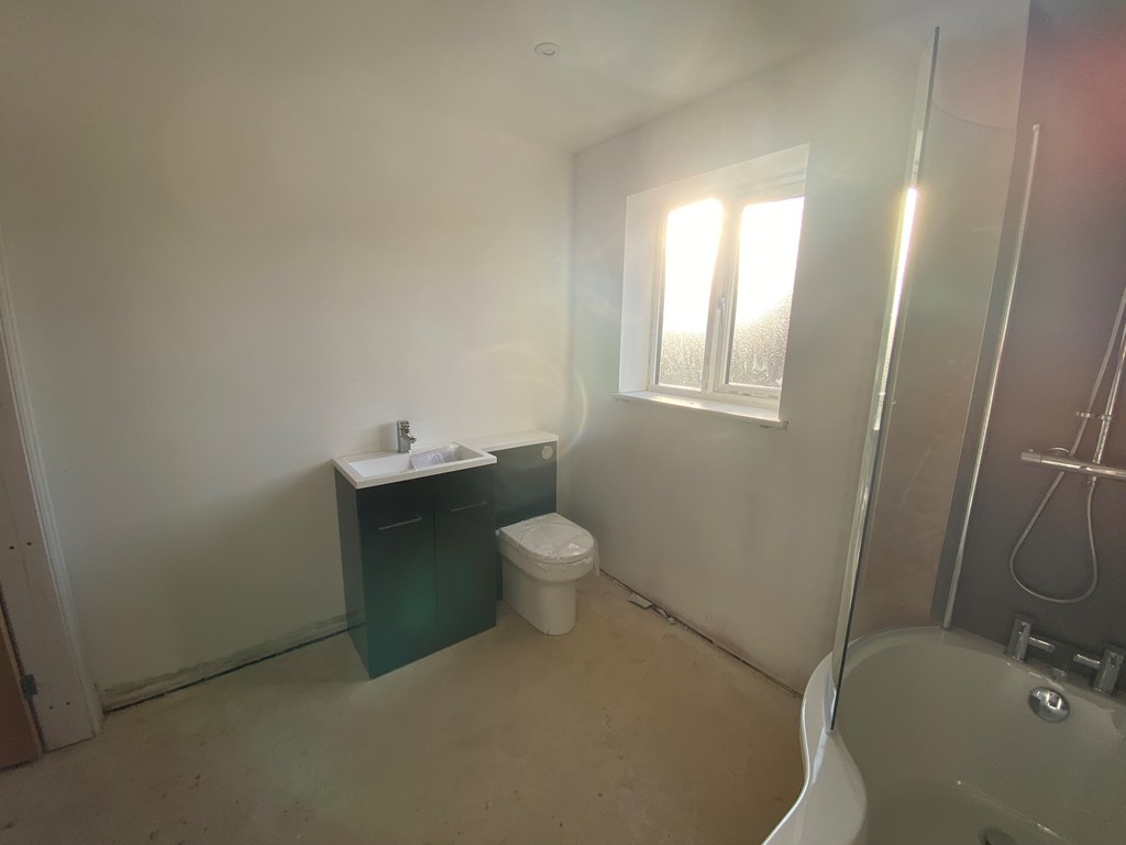 BATHROOM Four piece suite comprising Shower cubicle, bath, wash basin and low level flush WC. Double glazed window to side. Extractor fan. LVT flooring.