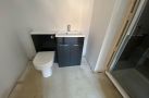 ENSUITE Three piece suite comprising shower cubicle, wash basin and low level flush WC. Extractor fan. LVT flooring.