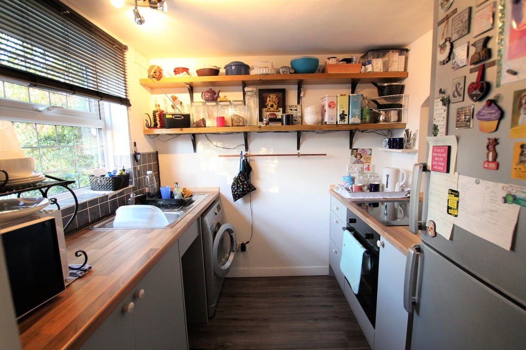 KITCHEN 7' 4" x 7' 5" (2.24m x 2.26m) Fitted kitchen of base cupboards, Single drainer sink with mixer taps. Tiled splashbacks to work surfaces. Fitted Oven and Hob. Plumbing for washing machine. Space for Fridge Freezer. Laminate floor.