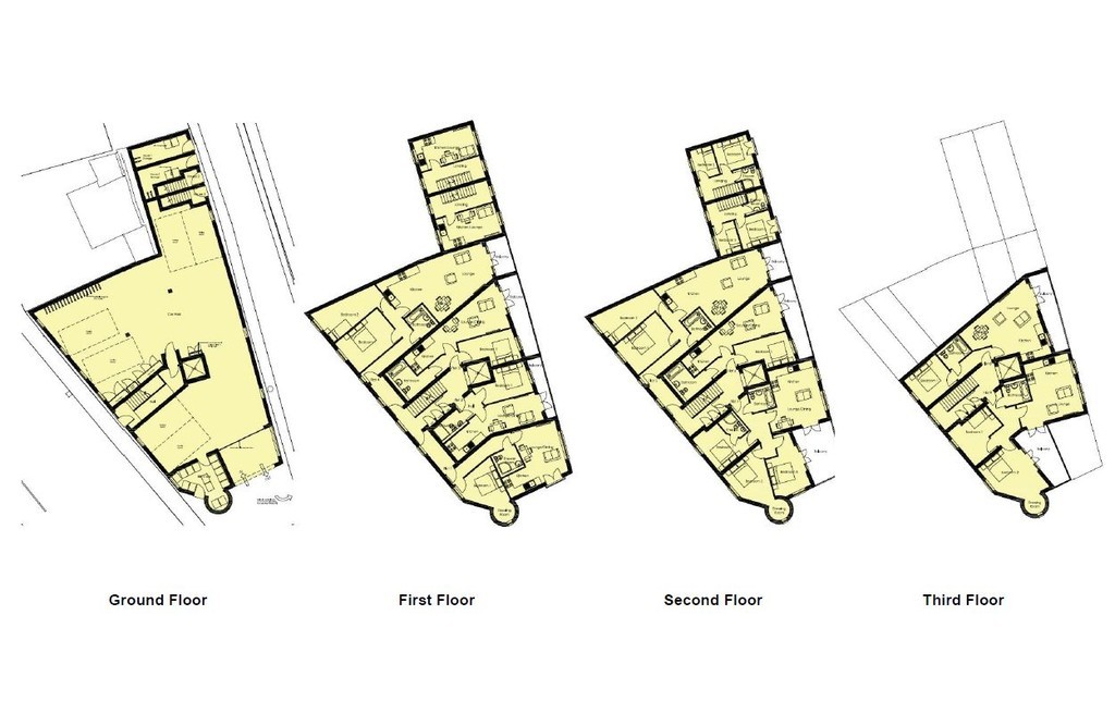 The scheme approved under reference F/YR07/0228/F provides for 2 x 2 bedroom town houses, 5 x 1 bedroom, 3 x 2 bedroom and 1 x 3 bedroom flats over 3 floors above ground floor parking.