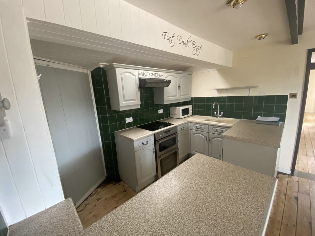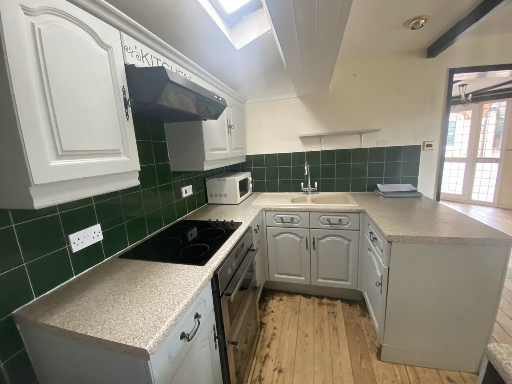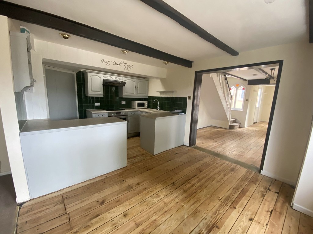 KITCHEN/DINER 15' 11" x 10' 10" max (4.85m x 3.3m) Double glazed window to front, shelved meter cupboard, radiator, range of fitted wall and base units with worktop surfaces and tiled splashbacks, single drainer one and a half bowl sink unit, fitted 4 ring electric hob, electric double oven and extractor, inset spot lights and mock beamed ceiling, boiler cupboard housing wall mounted Glow Worm gas fired boiler.