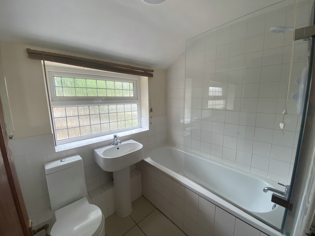 BATHROOM 6' 4" x 5' 6" (1.93m x 1.68m) Having low level wc, pedestal wash basin, bath with tiled side panel, shower and screen over, tiled floor, part tiled walls, double glazed window.
