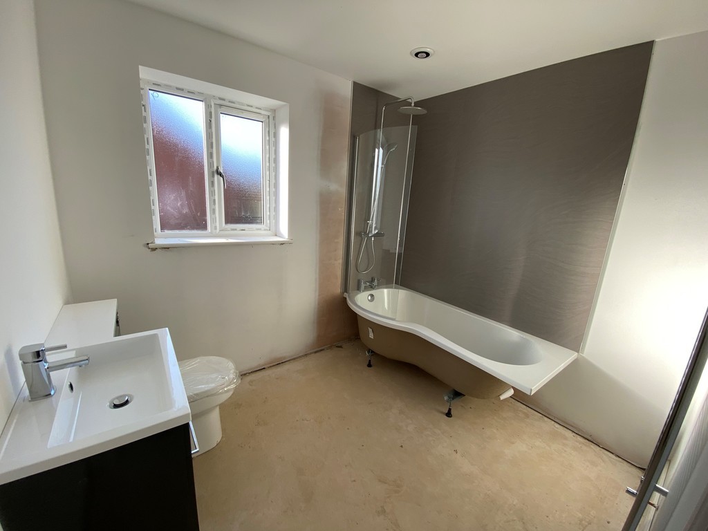 BATHROOM Four piece suite comprising Shower cubicle, bath, wash basin and low level flush WC. Double glazed window to side. Extractor fan. LVT flooring.