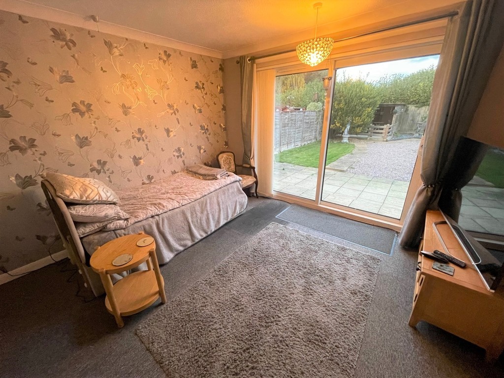 BEDROOM TWO 11' 10" x 11' 10" (3.61m x 3.61m) UPVC double glazed sliding patio doors to rear. Built-in wardrobe. Radiator.