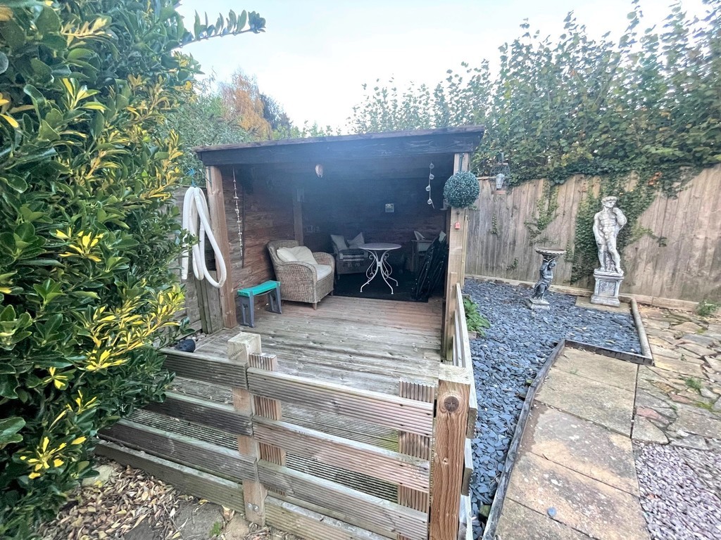 OUTSIDE To the front mainly laid to gravel with tarmac driveway providing off-road parking. Wooden pedestrian gates to sides. Outside lighting. Outside tap. To the rear mainly laid to gravel with patio area, small strip of grass, mature plants, shrubs and small bushes. A wooden covered area with decking. Outside lighting. Boarded with wooden fencing.