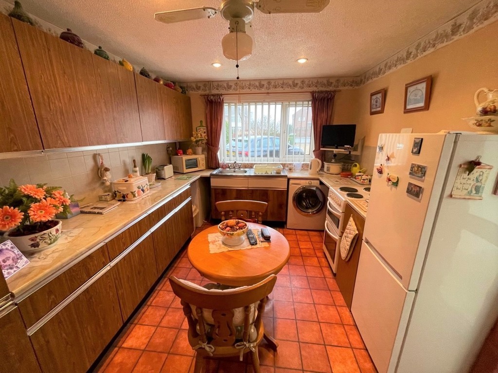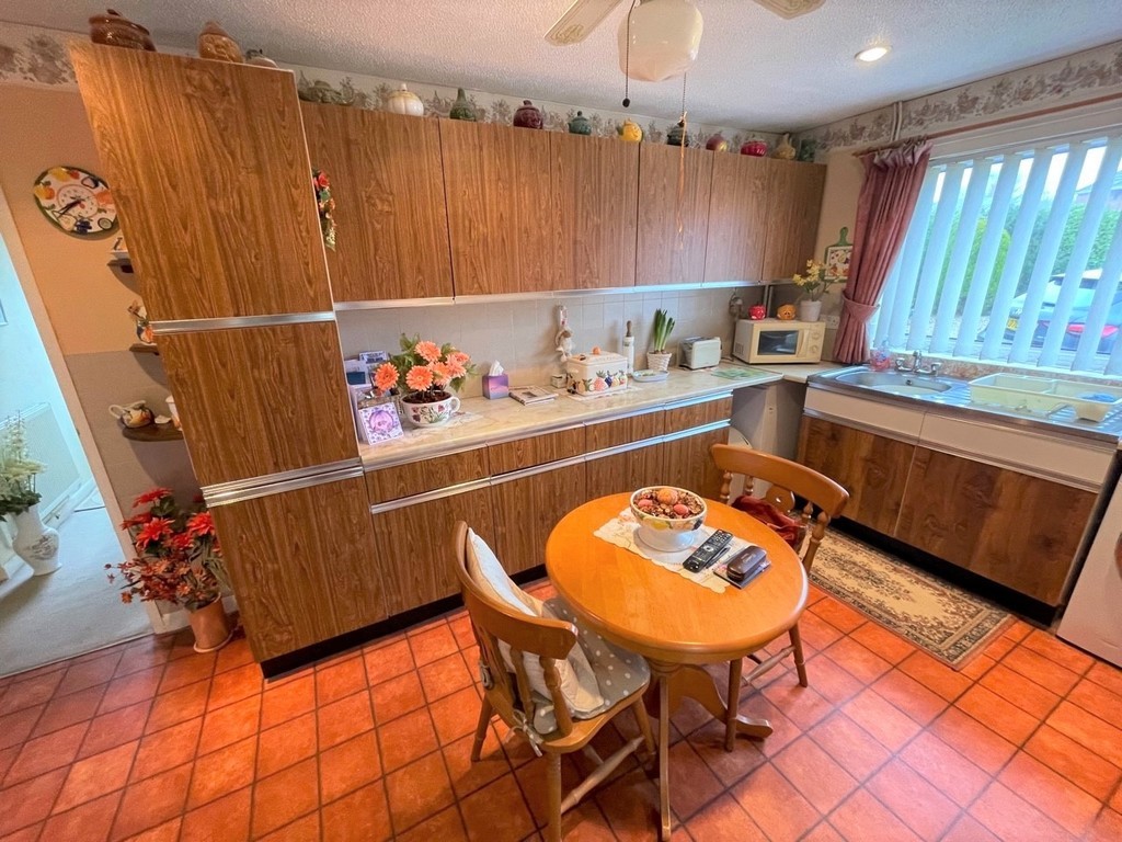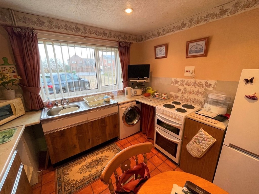 KITCHEN 15' 9" x 10' 1" (4.81m x 3.09m) UPVC double glazed window to front. UPVC part glazed, double glazed door to side. Range of wall and base units with work tops over. Stainless steel sink with drainer. Space for electric cooker. Plumbing for washing machine. Floor mounted boiler. Shelved airing cupboard. Tiled splash backs. Radiator.