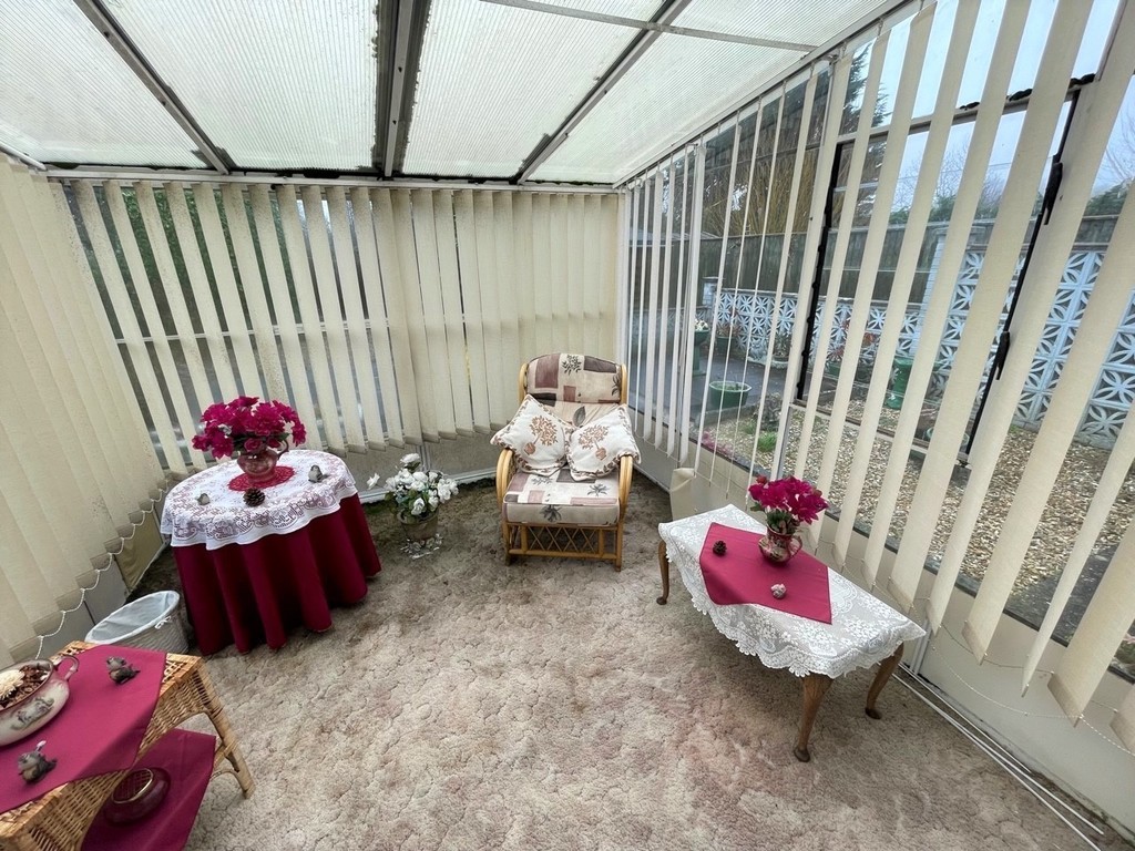 CONSERVATORY 9' 5" x 9' 3" (2.89m x 2.83m) Sloping poly-carbonate roof. UPVC single glazed windows.