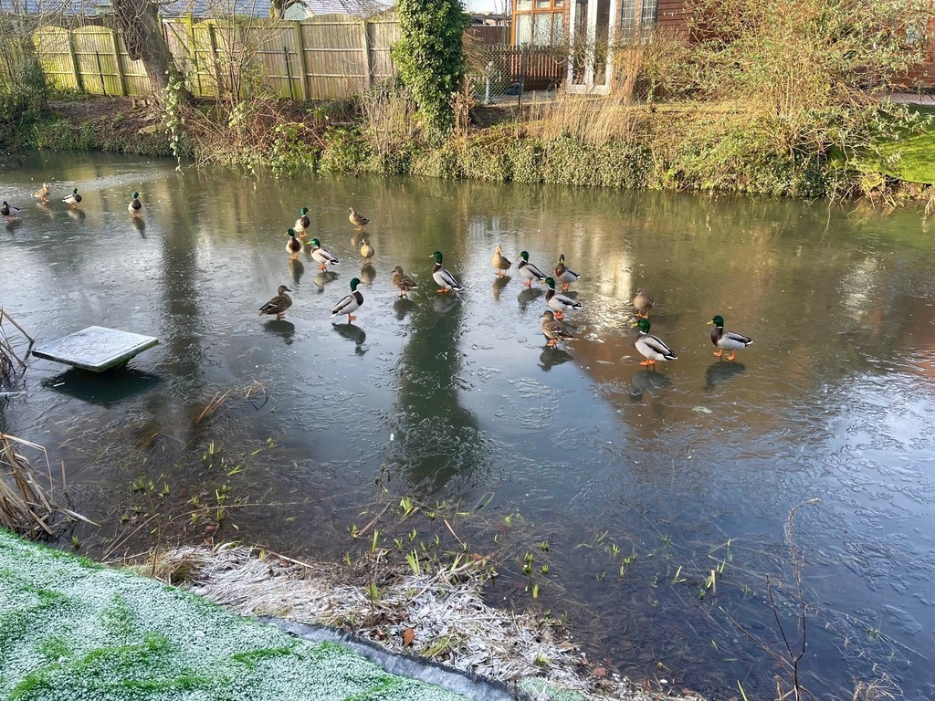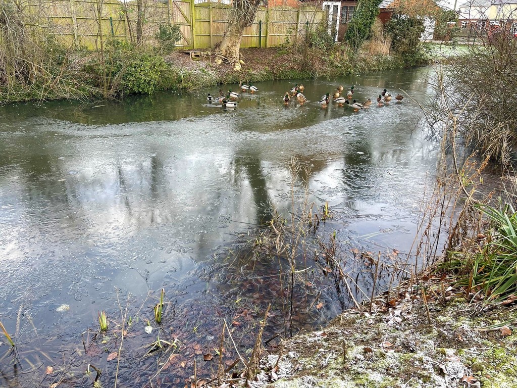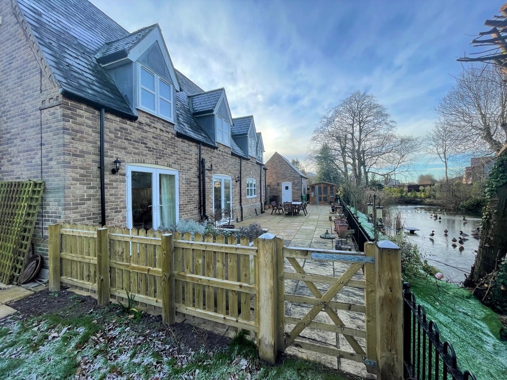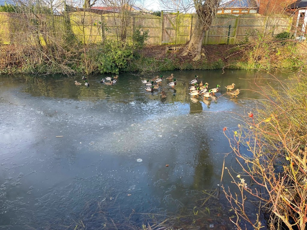 OUTSIDE Wooden gates open onto a red brick driveway providing off-road parking for numerous cars, leading to the Detached single garage. Part laid to grass. Mature hedging, trees, plants and shrubs. Duckpond to side with a plethora of our feathered friends. To the rear, laid to patio with an ornate metal fence overlooking the pond. Wooden summerhouse. Outside tap. Outside lighting.