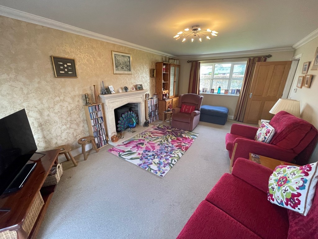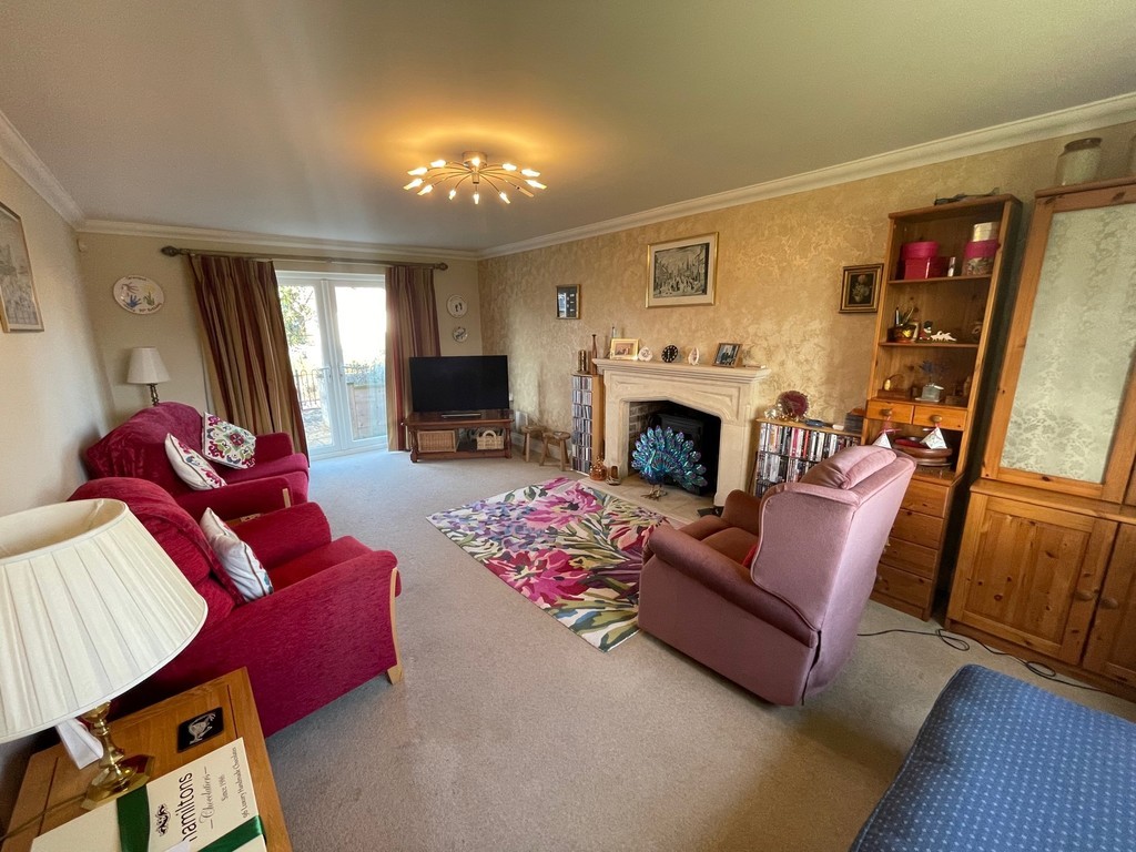 LOUNGE 20' 5" x 11' 11" (6.23m x 3.64m) UPVC double glazed window to front and French doors to rear - double aspect. Feature stone fireplace with built-in wood burner. Aerial socket.