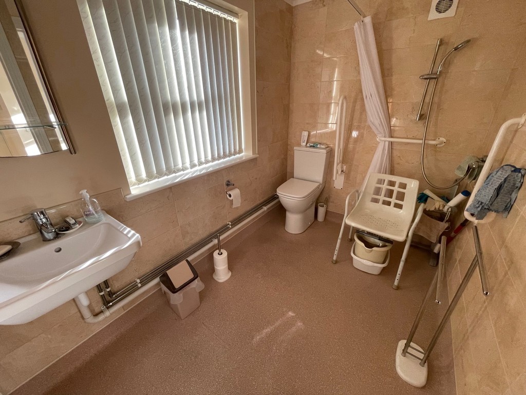 DOWNSTAIRS WETROOM 9' 6" x 5' 8" (2.92m x 1.75m) UPVC double glazed window to front. Low level WC. Wall mounted hand basin with mixer tap. Wall mounted shower. Part tiled walls. Extractor fan.