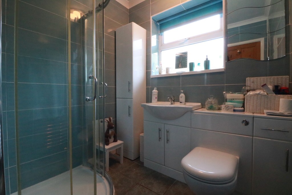 BATHROOM/SHOWER ROOM 6' 10" x 6' 6" (2.08m x 1.98m) Window to rear, Low-level WC, Walk-in shower cubicle, Hand wash basin and storage, Heated towel rail.Tiled walls and floor.
