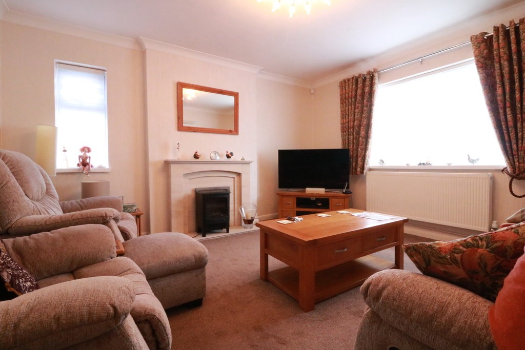 The lounge is of good size with a focal fireplace and generous windows offering loads of natural light with views over the front.