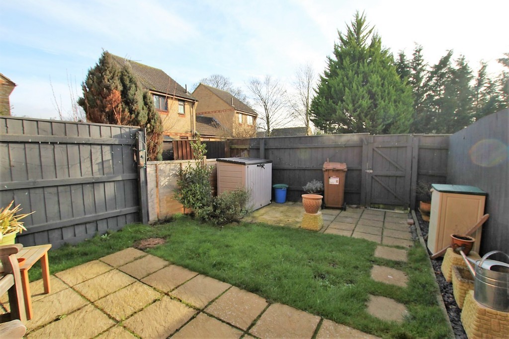 REAR GARDEN Patio area over looking lawn with a collection of flowers and shrubs. Back gate leading to parking area. Side garden area housing Oil tank. Outdoor Tap. Outdoor Light.