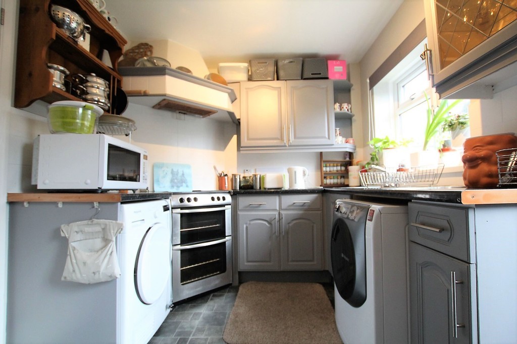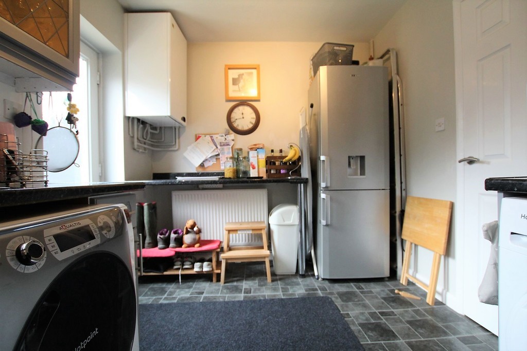 KITCHEN/BREAKFAST ROOM 12' 0" x 8' 0" (3.66m x 2.44m) Window and door to rear gardens. Stainless steel sink. Worktop surfaces. Wall and base cupboards with drawers under, all matching. Tiled splashbacks. Space for Cooker. Extractor hood with canopy over. Space for Fridge Freezer. Fitted Breakfast bar area. Wall mounted oil fired central heating boiler. Back door to rear garden.