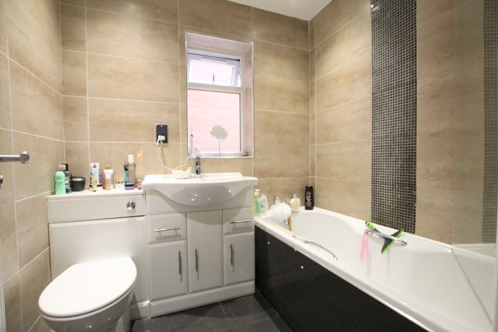 BATHROOM 6' 5" x 5' 6" (1.96m x 1.68m) Window to side. Hand wash basin with cupboards and drawers under. Low Level WC. Bath with Electric shower over and shower screen. Heated towel rail. Extractor fan.