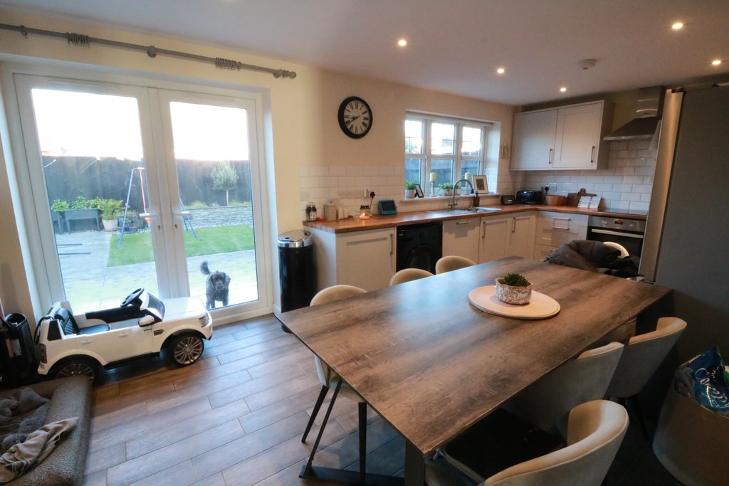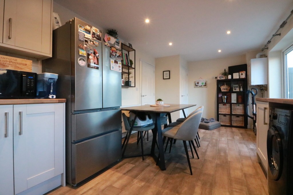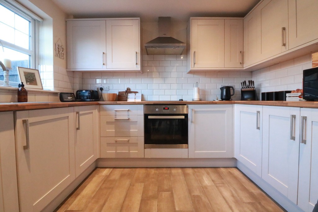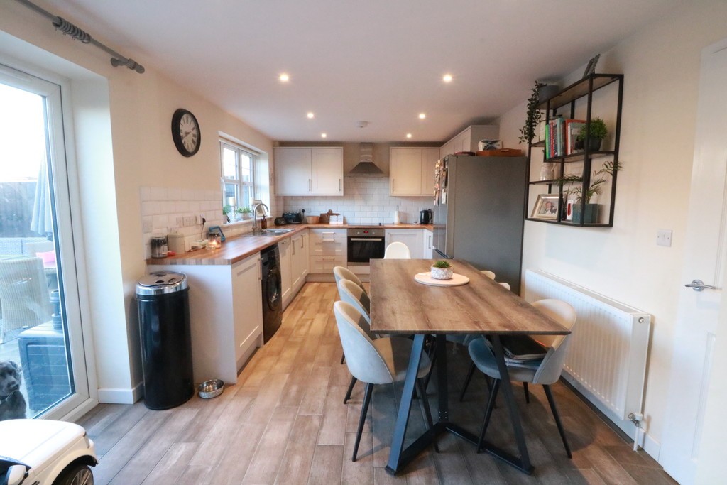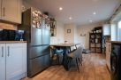 KITCHEN / DINER / DAYROOM 21' 0" x 10' 1" (6.4m x 3.07m) Window to rear. Inset stainless sink, Fitted Work top surfaces. Cupboards and drawers under. Tiled splashbacks. Wall Cupboards. Fitted Electric oven, Hob and Extractor fan. Integrated dishwasher. Plumbing for Washing Machine. Inset Spotlights. Radiator. Wall mounted Gas Central Heating Boiler. Tiled floor. French doors to rear garden.