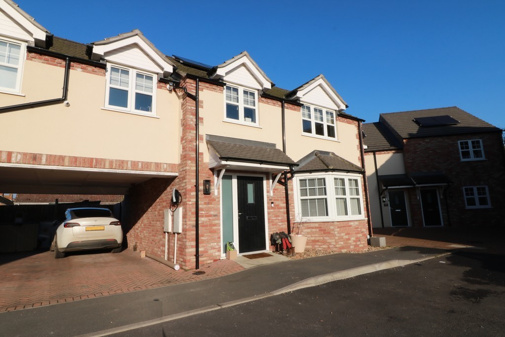 FRONT OF PROPERTY The property has an open plan frontage with a good size block paved drive / parking area to side offering covered parking. Gate leading to enclosed rear gardens.
