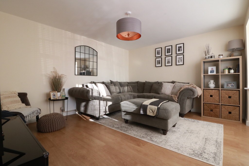LOUNGE 14' 6" x 13' 5" (4.42m x 4.09m) Bay window to front, (measure into bay window). Laminate floor. Radiator.