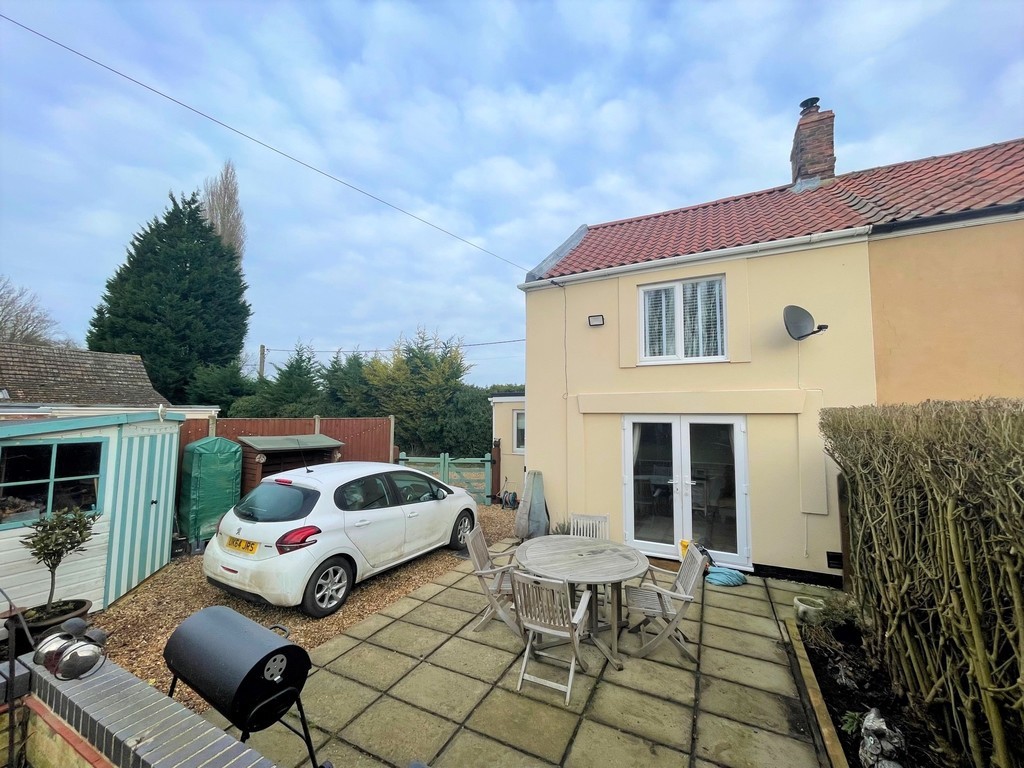 OUTSIDE To the front concrete slabbed pathway and part laid to gravel. Outside lighting. The rear garden split level with a patio area and gravelled driveway providing off-road parking with steps leading to grassed area. Boarded with mature hedging and wooden fencing. Mature plants and shrubs. Wooden shed. Outside tap. Wooden side gate for right-of-way access to neighbour.
