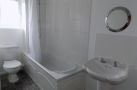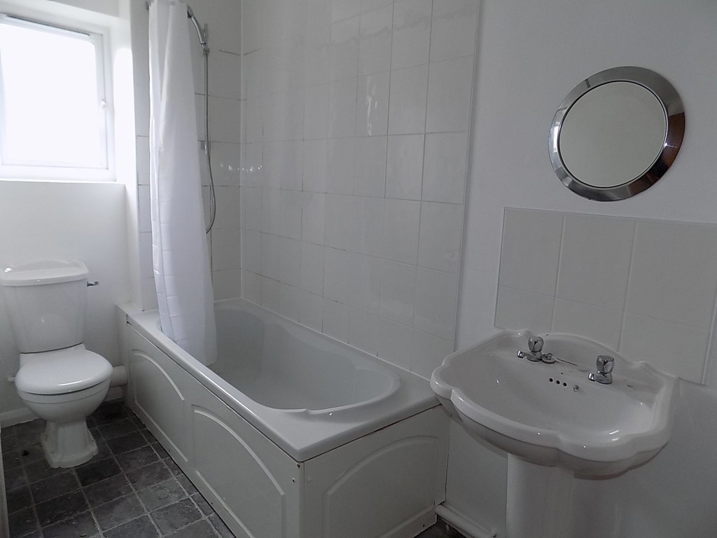 BATHROOM 10' 9" x 4' 7" (3.28m x 1.4m) Having white suite including low level wc, pedestal wash basin and panel bath with shower over, tiled splashbacks, extractor fan, radiator, double glazed window to rear, textured ceiling.