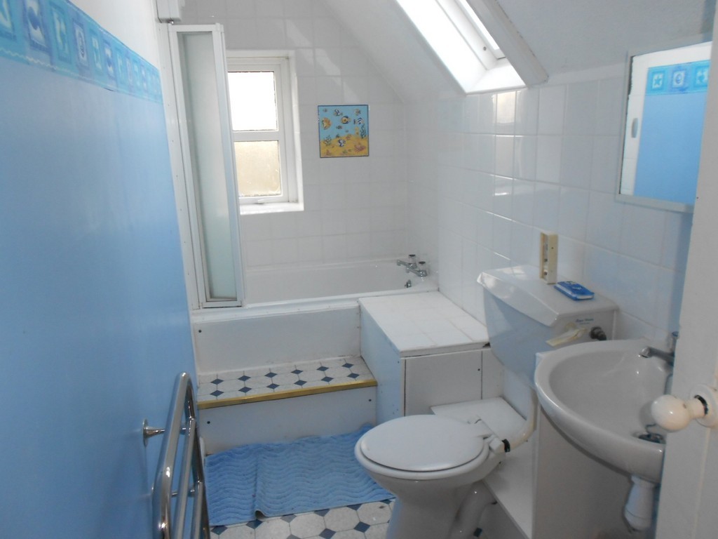 BATHROOM 11' 2" x 4' 1" max (3.4m x 1.24m) Fitted white suite including bath with shower over, low level wc and wash basin, fitted electric towel rail, double glazed sky light and inset spot lights to ceiling, double glazed window, partly tiled walls, extractor fan.