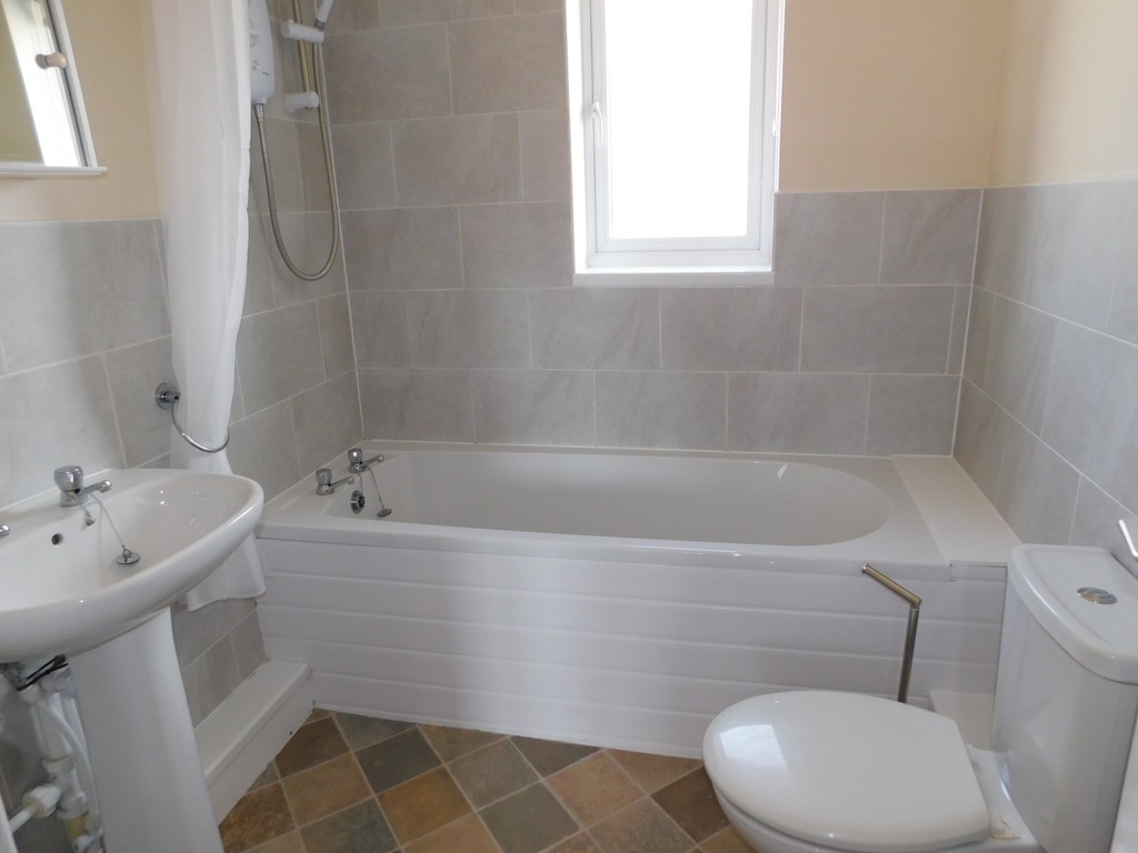 BATHROOM 6' 3" x 6' 1" (1.91m x 1.85m) Double glazed window to the rear, three piece suite comprising pedestal hand basin, low level wc and panelled bath with shower over, wall tiling, radiator.