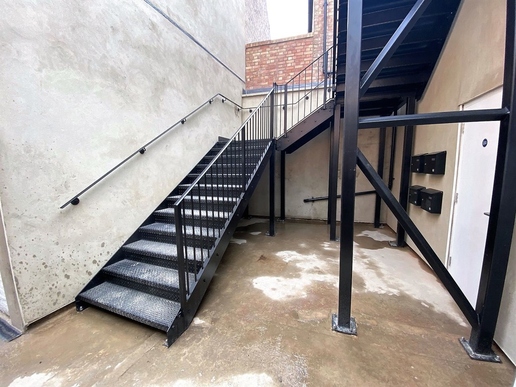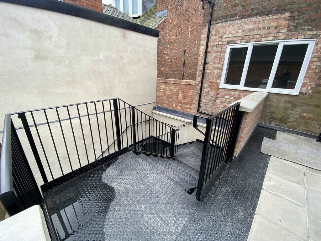 OUTSIDE Secure gated entrance leads to communal walkway. Mail boxes. Stairs leading to the shared first floor roof top terrace. The terrace is shared between four flats.