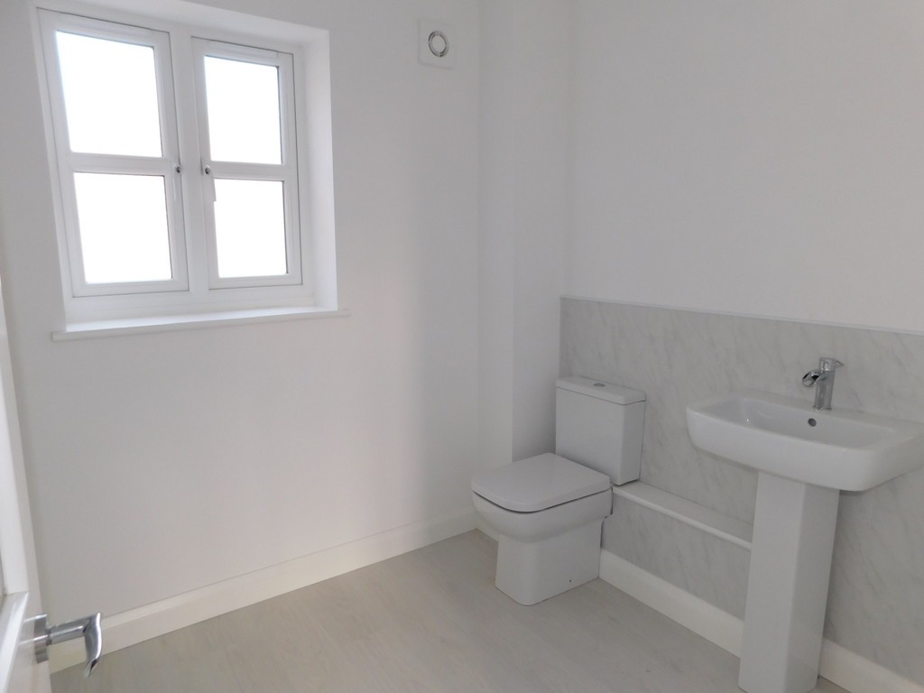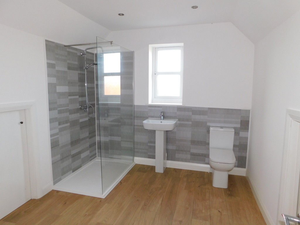 SHOWER ROOM 10' 5" x 8' 9" (3.18m x 2.67m) Access to eaves, shower, low level wc, pedestal wash basin, splashbacks, upright towel radiator, extractor, inset spot lighting.