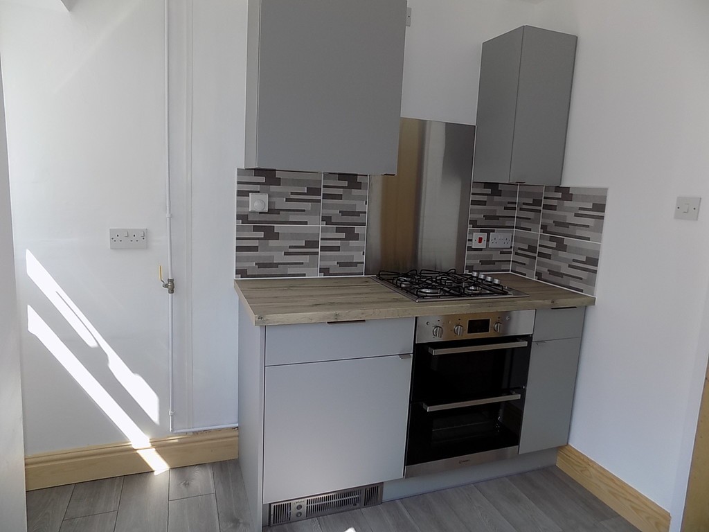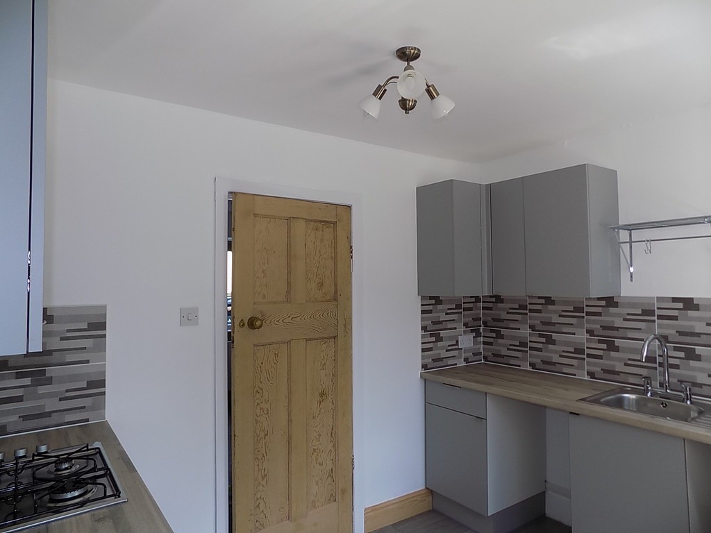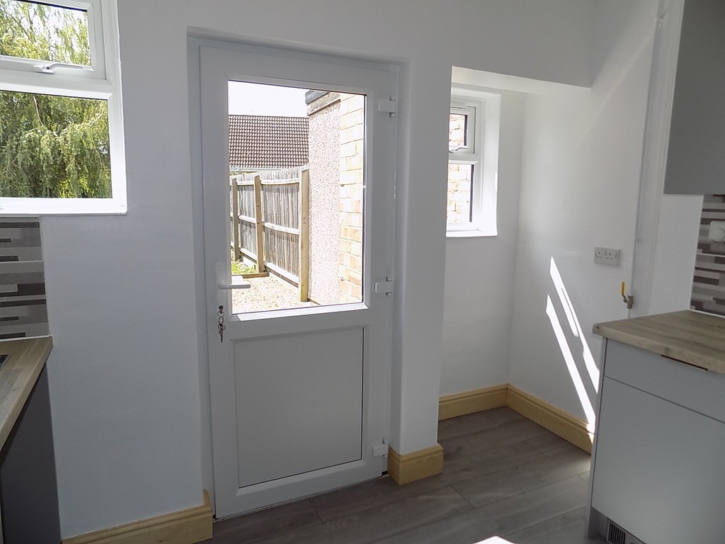 KITCHEN 10' 2" x 7' 2" (3.1m x 2.18m) Two double glazed windows to rear, double glazed entrance door to rear, floor heater with thermostat control, flat ceiling with light, range of wall, base and drawer units with worktop surface and tiled splashbacks, oven and hob with stainless steel splashback, stainless steel drainer with sink bowl unit, plumbing and space for washing machine, space and plumbing for three quarter dishwasher.