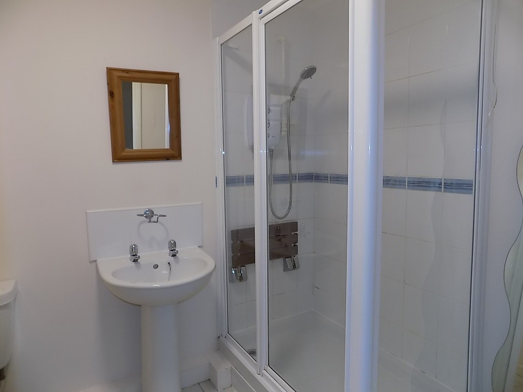 BATHROOM 8' 3" x 5' 7" (2.51m x 1.7m) Textured and coved ceiling with light, tiled floor, extractor fan, radiator low level wc, pedestal wash hand basin, shower cubicle.