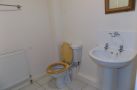 CLOAKROOM 5' 9" x 2' 10" (1.75m x 0.86m) Textured and coved ceiling, low level wc, extractor fan, vanity unit with wash hand basin, tiled splashbacks, mirror and towel rail.