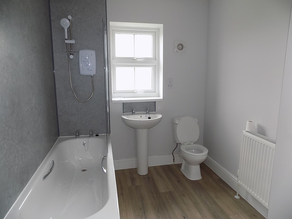 BATHROOM 10' 10" x 6' 11" (3.3m x 2.11m) Flat ceiling with light, double glazed window to side, extractor fan, low level wc, pedestal wash hand basin, bath with shower over, airing cupboard housing immersion tank.
