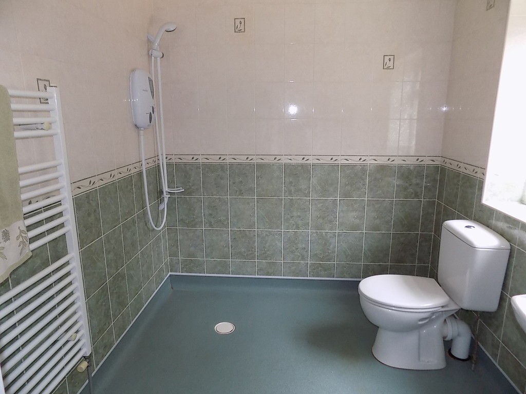 WET ROOM 6' 11" x 6' 6" (2.11m x 1.98m) Double glazed window to side, flat ceiling with light, fully tiled walls, wet room flooring, fitted shower, low level wc, pedestal wash hand basin, towel radiator, extractor fan.