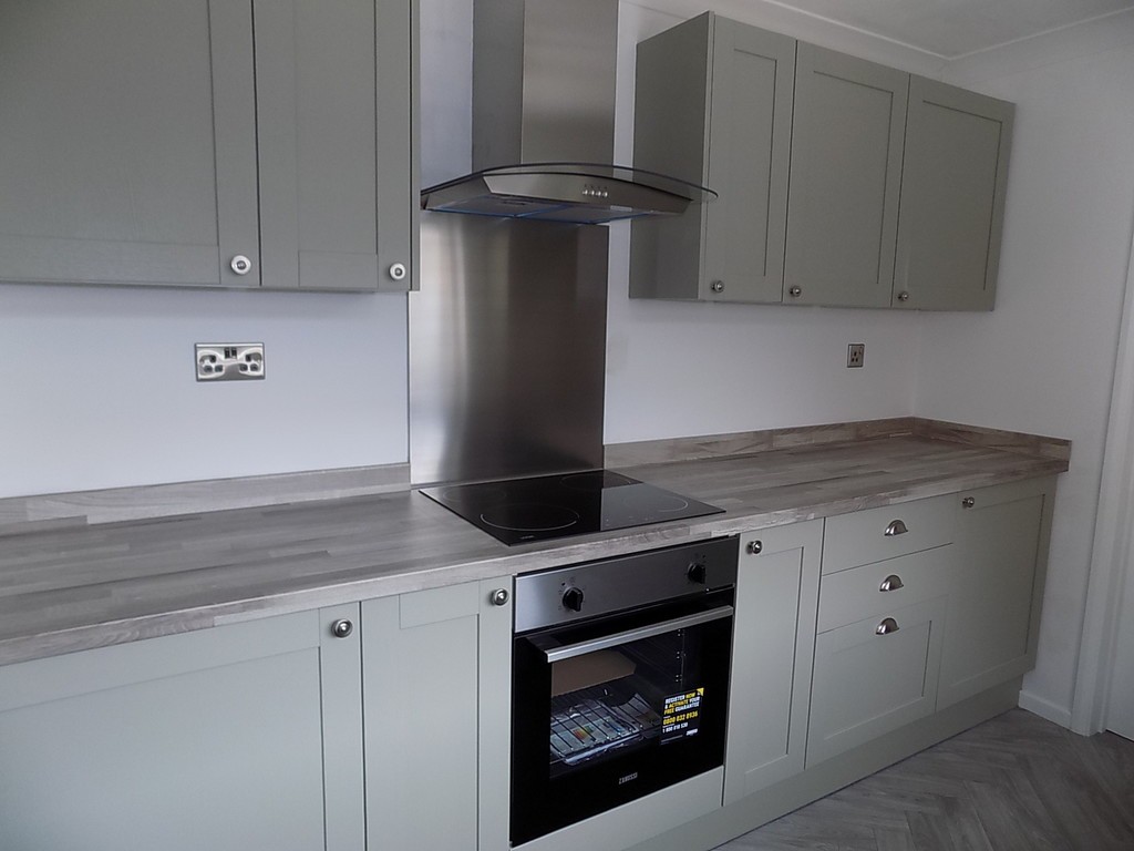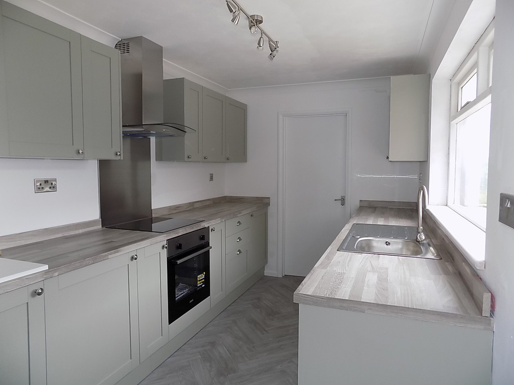 KITCHEN 12' 2" x 7' 6" (3.71m x 2.29m) Window to side, textured and coved ceiling with spotlight, newly fitted kitchen with matching wall, base and drawer units,worktop surfaces, stainless steel single bowl sink unit, stainless steel canopy extractor fan with hob and oven, space for dishwasher.
