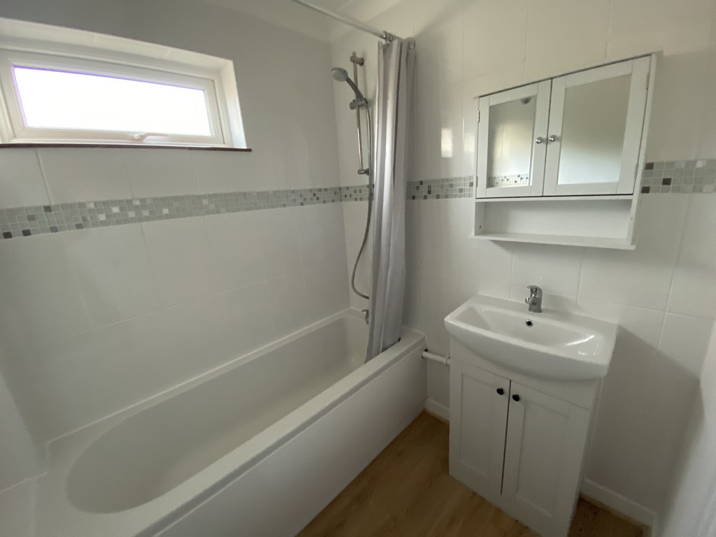 BATHROOM 6' 4" x 5' 10" (1.93m x 1.78m) Double glazed window, fitted white suite including low-level WC, vanity wash basin with hot and cold mixer tap and panel bath with hot and cold mixer tap and shower attachment, shower curtain and rail, tiled surrounds, textured and coved ceiling, wall mounted mirrored door medicine cabinet.