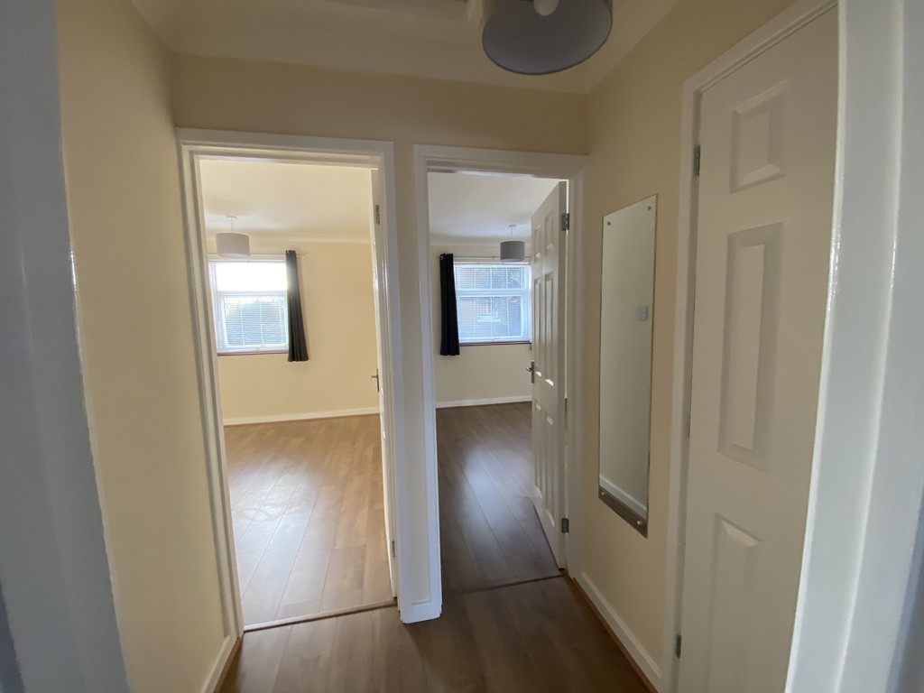 INNER HALLWAY Laminate flooring, textured and coved ceiling, loft access, shelved storage cupboard, doors leading to both bedrooms and bathroom.